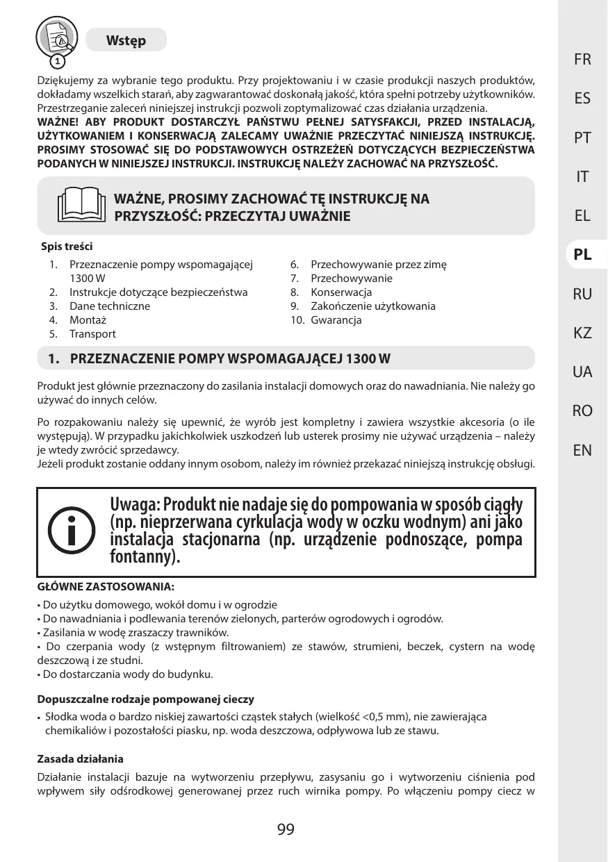 INSTRUKCJA OBSŁUGI 1300 WT 50 SM5I-3 6000 L/H STERWINS