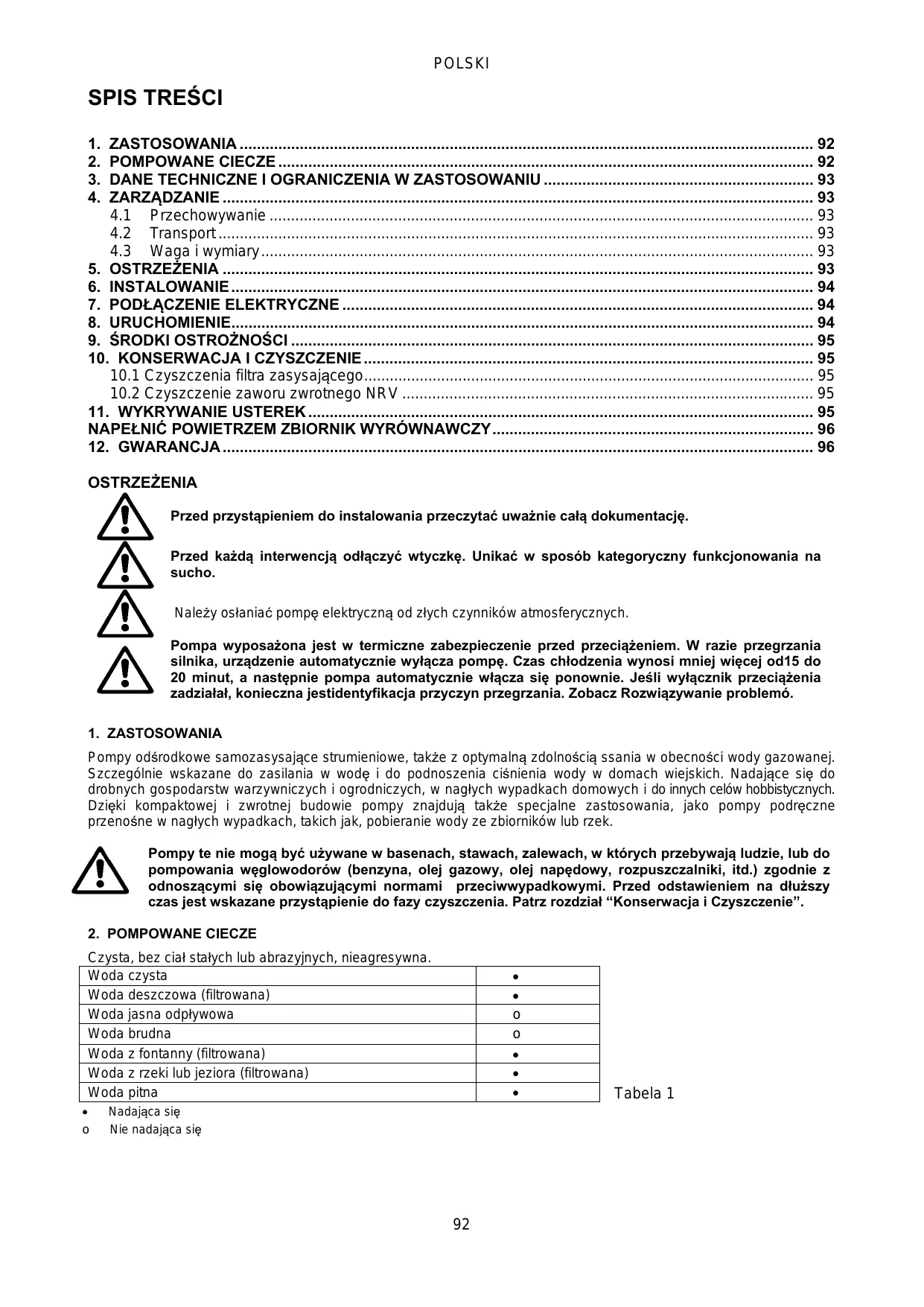 2. LIQUIDES POMPABLES Propre sans corps solide ou abrasif, sans calcaire ou minéralisation excessive