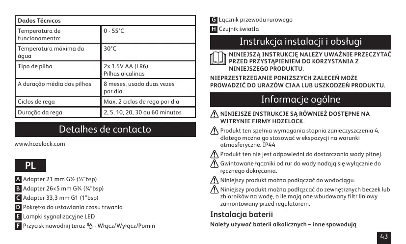 INSTRUKCJA OBSŁUGI SENSOR, 1 VOIES - 2212 HOZELOCK