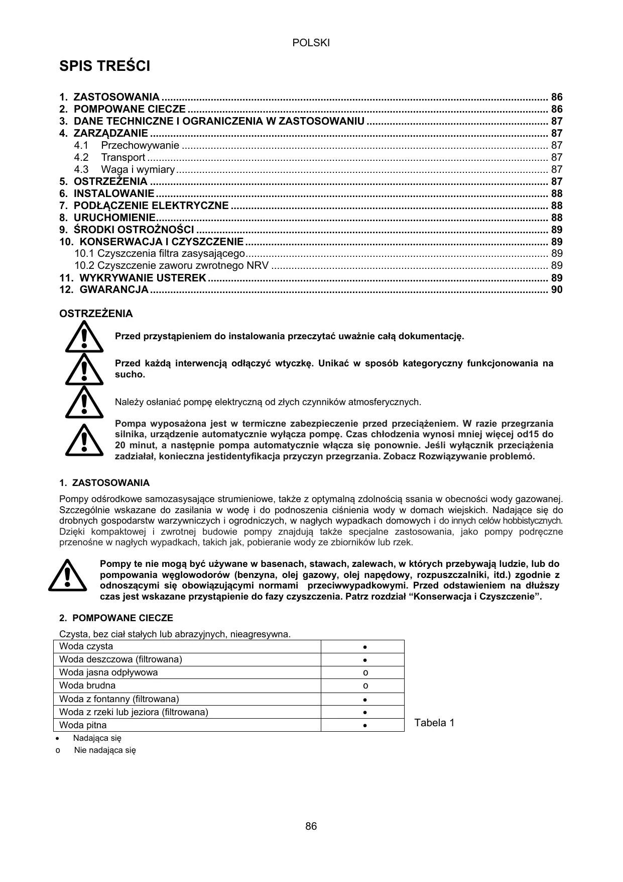 2. LIQUIDES POMPABLES Propre sans corps solide ou abrasif, sans calcaire ou minéralisation excessive.