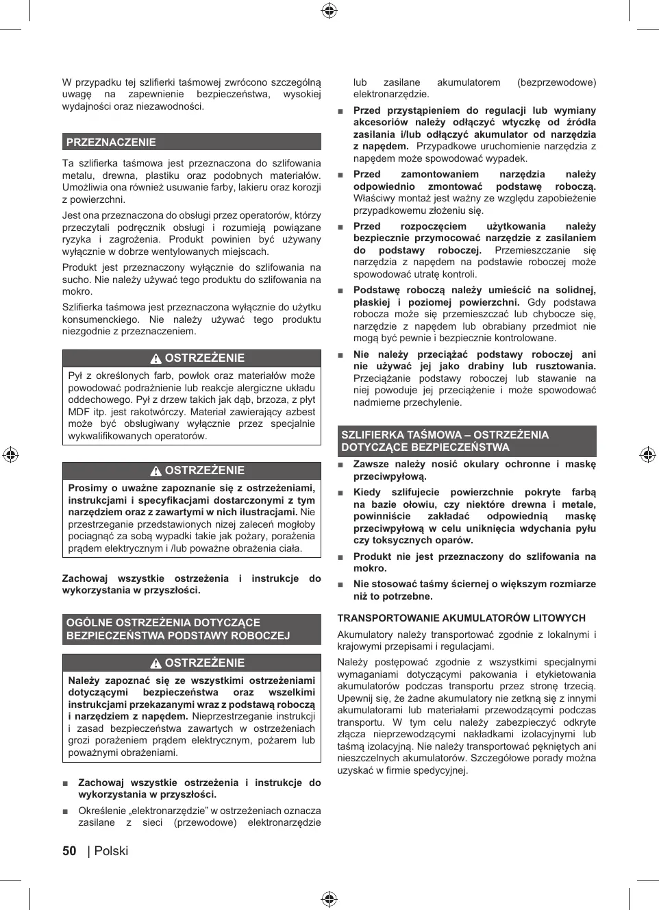 PRZEZNACZENIE Ta szliferka ta$mowa jest przeznaczona do szlffowania metalu, drewna, plastiku oraz podobnych materialéw. Umoäliwia ona réwniez usuwanie farby, lakieru oraz korozji z powierzchni.
