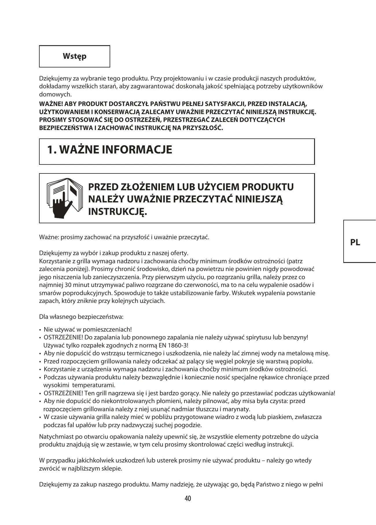 Pobierz instrukcję dla swojego Grill w formacie PDF za darmo! Znajdź swoją instrukcję Trolley - Leroy Merlin i weź swoje urządzenie elektroniczne z powrotem w ręce. Na tej stronie opublikowane są wszystkie dokumenty niezbędne do korzystania z urządzenia. Trolley marki Leroy Merlin.