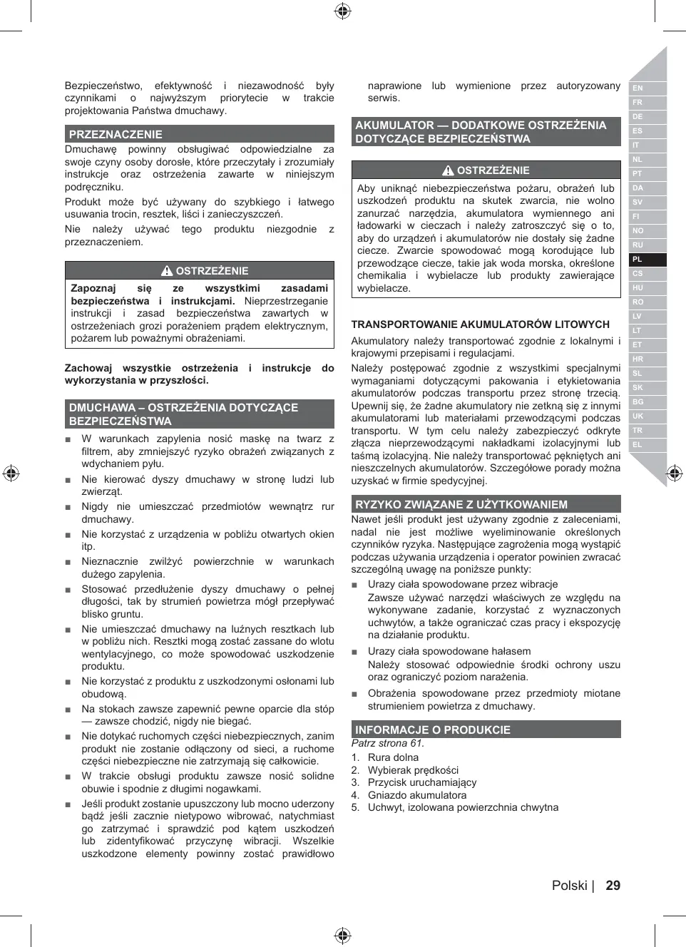 = Blessures dues aux vibrations Toujours utiliser l'outil adapté à la tâche, utiliser les poignées désignées et limiter le temps de fonctionnement et d'exposition = Blessures dues au bruit Portez une protection auditive adaptée et limitez le temps d'exposition = Blessure provoquée par des objets envoyés par le flux du tube du souffleur.