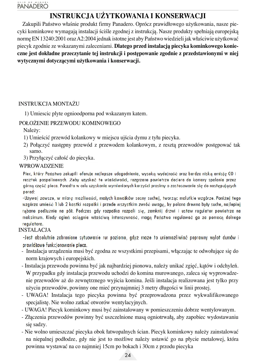 INSTRUKCJA OBSŁUGI SAPHIR ECODESIGN PANADERO