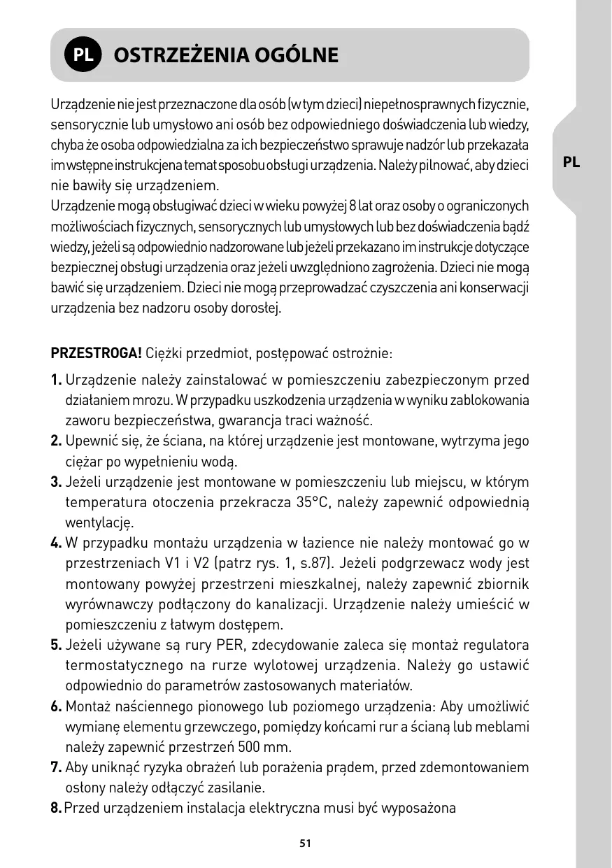 przestrzeniach V1 i V2 (patrz rys. 1, s.87]. Jezeli podgrzewacz wody jest montowany powyzej przestrzeni mieszkalnej, nalezy zapewnié zbiornik wyréwnawczy podtaczony do kanalizacji. Urzadzenie nalezy umiescié w pomieszczeniu z tatwym dostepem.