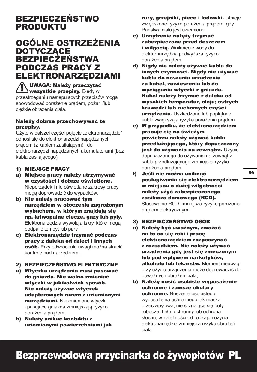 INSTRUKCJA OBSŁUGI WG259E WG259E.5 WG259E.9 WG260E WG260E.5 WG260E.9 WORX