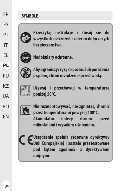 Ne démontez pas la batterie, ne l'écrasez pas etnelafaites pas chauffer à plus de 100 °C.