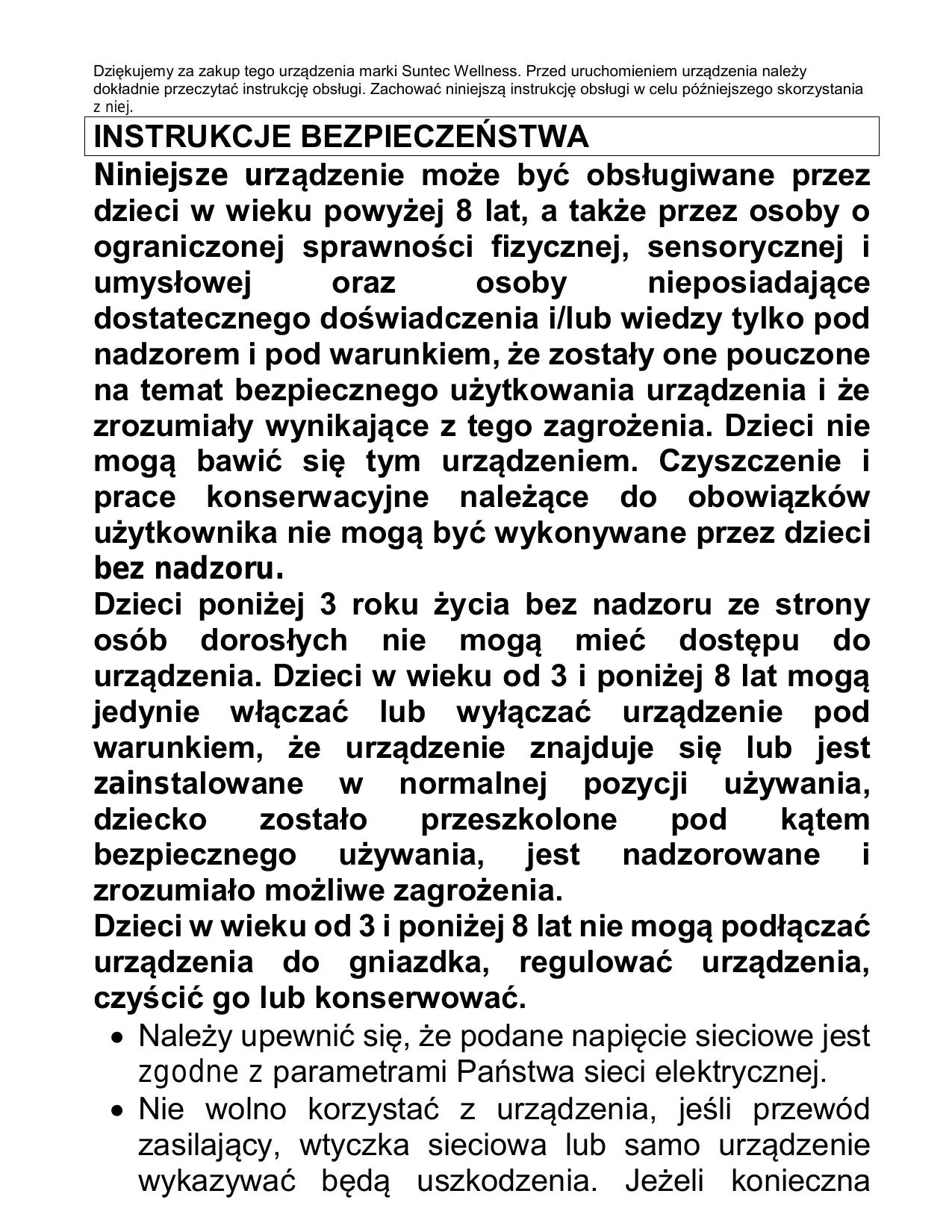 En caso de que necesite asistencia técnica, péngase en contacto con su distribuidor especializado. Denominacién del producto: Nümero de serie: Nombre del comprador: Fecha de compra: Sello y firma del distribuidor especializado: Fabricante: Nous nous engageons de remettre en état votre appareil gratuitement pendant la période de garantie de 24 mois ou alors de mettre à disposition les pièces détachées gratuitement à votre commerçant spécialisé, si votre appareil devait défaillir en raison d'une erreur de fabrication ou d’un vice de matériel côté production. Toute revendication à notre encontre allant au-delà est exclue. Nous n'assumons pas de responsabilité pour des endommagements dans des cas de force majeure, en cas de manipulation incorrecte, en cas de non-respect de la notice, en cas d'usure due au fonctionnement ou pour des dommages survenus sur le chemin du transport. Ce certificat est uniquement valable avec la facture correspondante. En cas d'intervention de service, veuillez ramener le produit acheté à votre commerçant spécialisé. Désignation de l’article : Numéro de série : Nom de l'acheteur : Date de l’achat : Cachet et signature du commerçant spécialisé : Fabricant : Suntec Wellness GmbH HolzstraRe 2