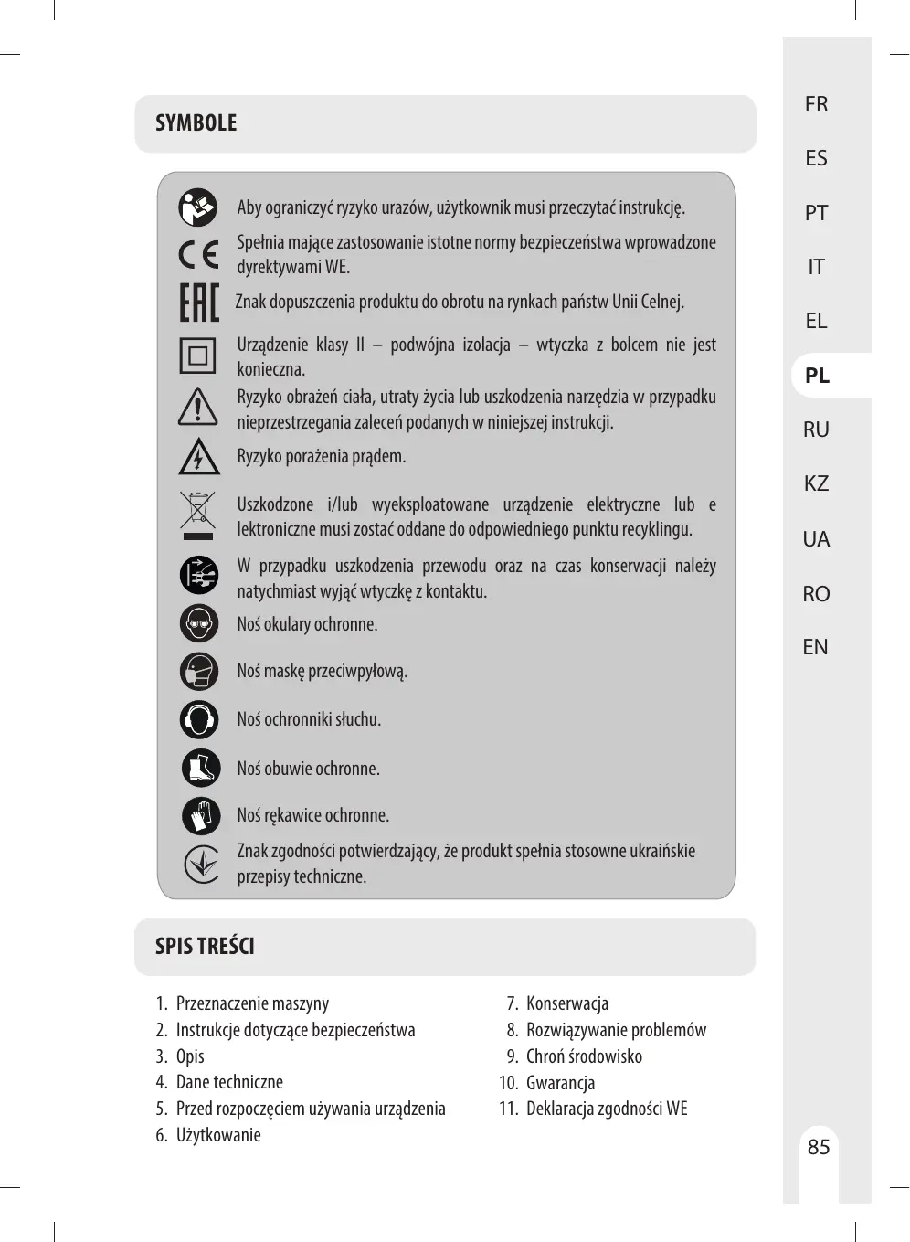 EN 61000-3-2:2014; EN 61000-3-3:2013 IEC 62321-1:2013; IEC 62321-2:2013 1EC62321-3-1:2013; IEC 62321-4:2013--AMD1:2017 CSV IEC 62321-5:2013; IEC 62321-6:2015 IEC 62321-7-1:2015; IEC 62321-7-2:2017 IEC 62321-8:2017; ISO 17075:2017 Dacä periile de cärbune trebuie sà fie inlocuite, aceastä operatie trebuie efectuatà de 0 persoanà calificatä in reparatii (se vor inlocui intotdeauna ambele perii in acelasi timp).