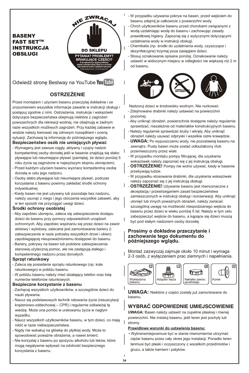FAST SET - Piscine hors-sol BESTWAY - Bezpłatna instrukcja obsługi