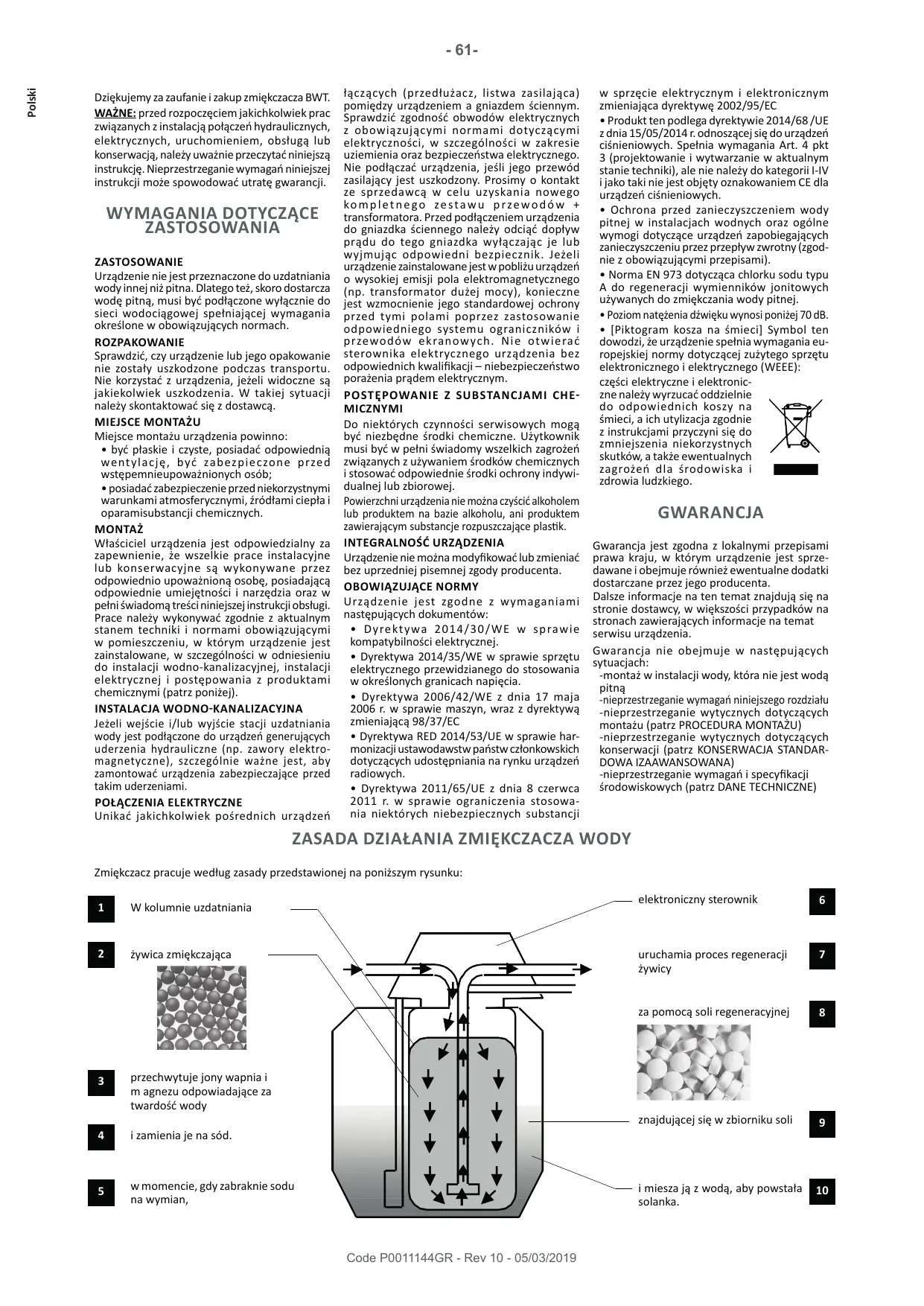 CIRRUS PLUS BWT, A6X - Adoucisseur d'eau BWT - Bezpłatna instrukcja obsługi