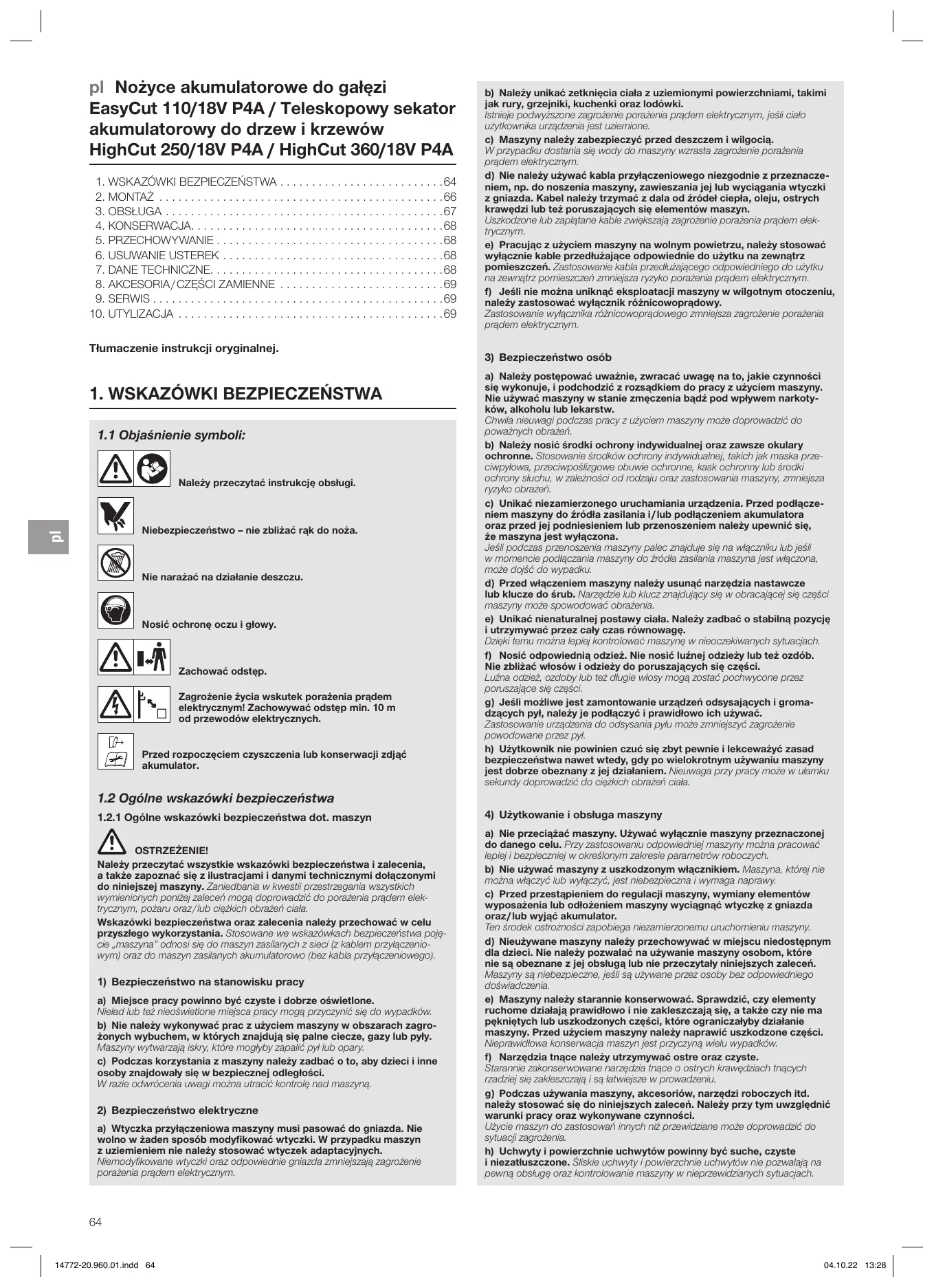 INSTRUKCJA OBSŁUGI EasyCut 110/18V P4A, HighCut 250/18V P4A, HighCut 360/18V P4A GARDENA