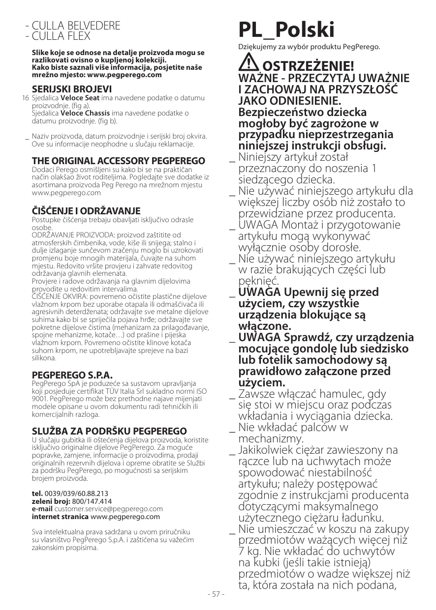 VELOCE TC MODULAR - Poussette trio PEG PEREGO - Bezpłatna instrukcja obsługi