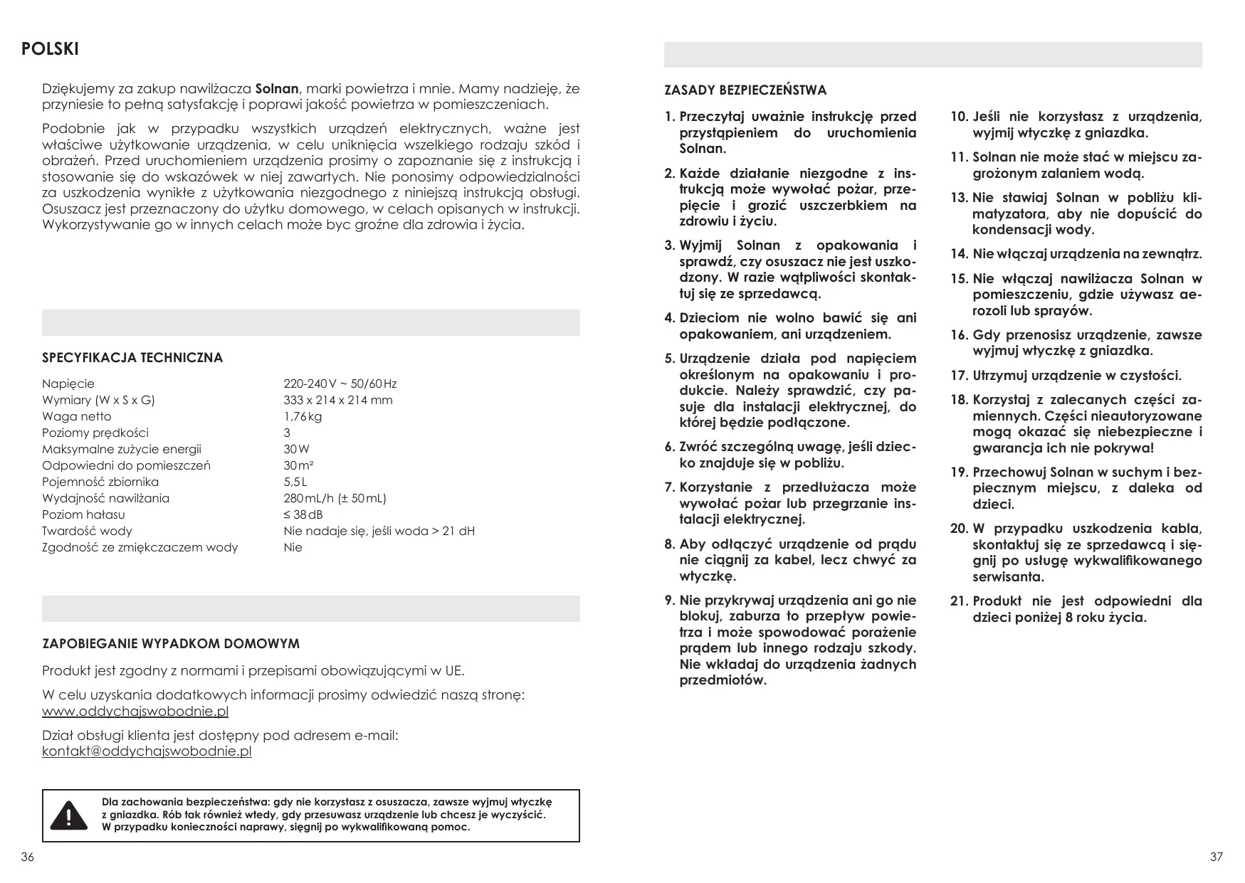INSTRUKCJA OBSŁUGI SOLNAN AIR AND ME