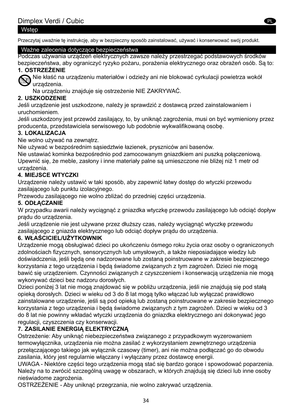 Znajdź bezpłatnie instrukcję urządzenia OPTYMIST CUBIC - VERDI DIMPLEX w formacie PDF.