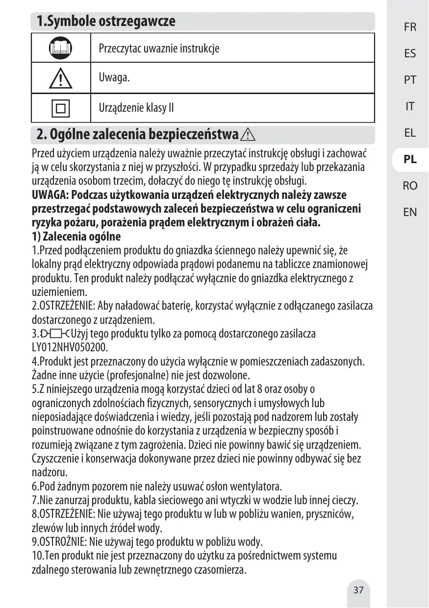 2.MISE EN GARDE : Pour recharger la batterie, utilisez uniquement l'unité d'alimentation amovible fournie avec cet appareil.
