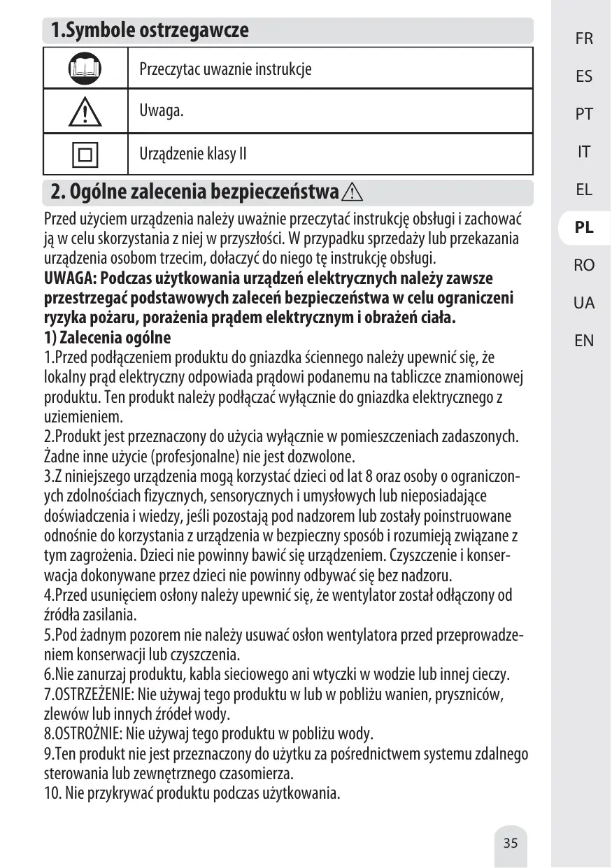 5.Ne retirez en aucun cas les grilles du ventilateur, aussi bien pour effectuer une opération d'entretien que de nettoyage.