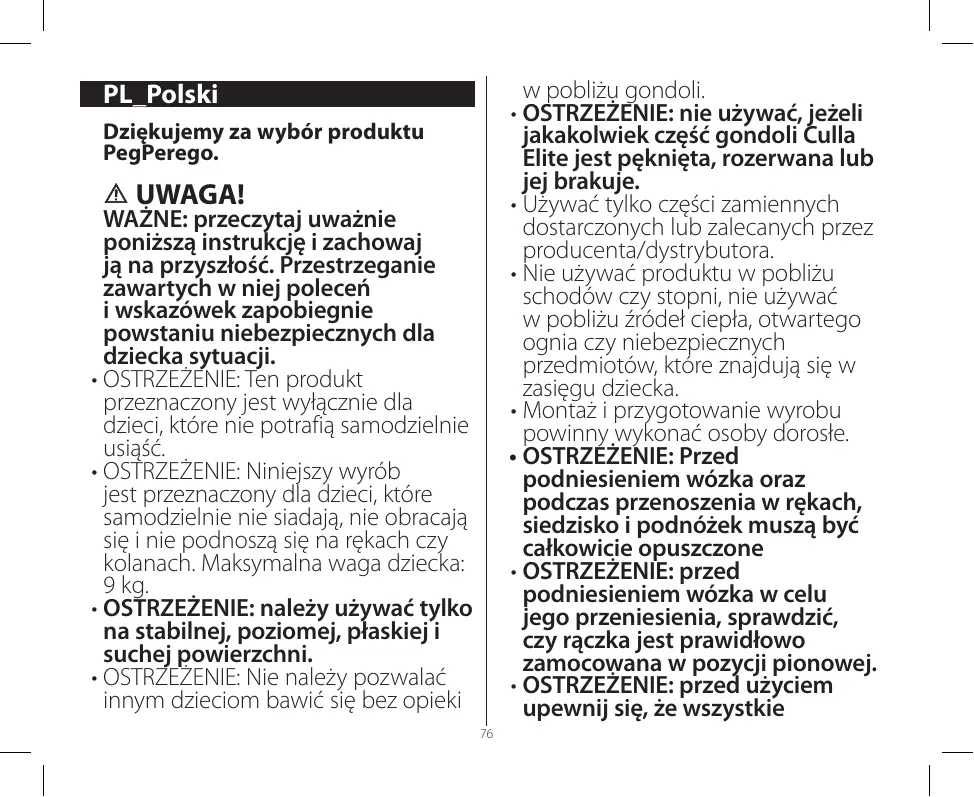 CULLA ELITE - Wózki PEG PEREGO - Bezpłatna instrukcja obsługi
