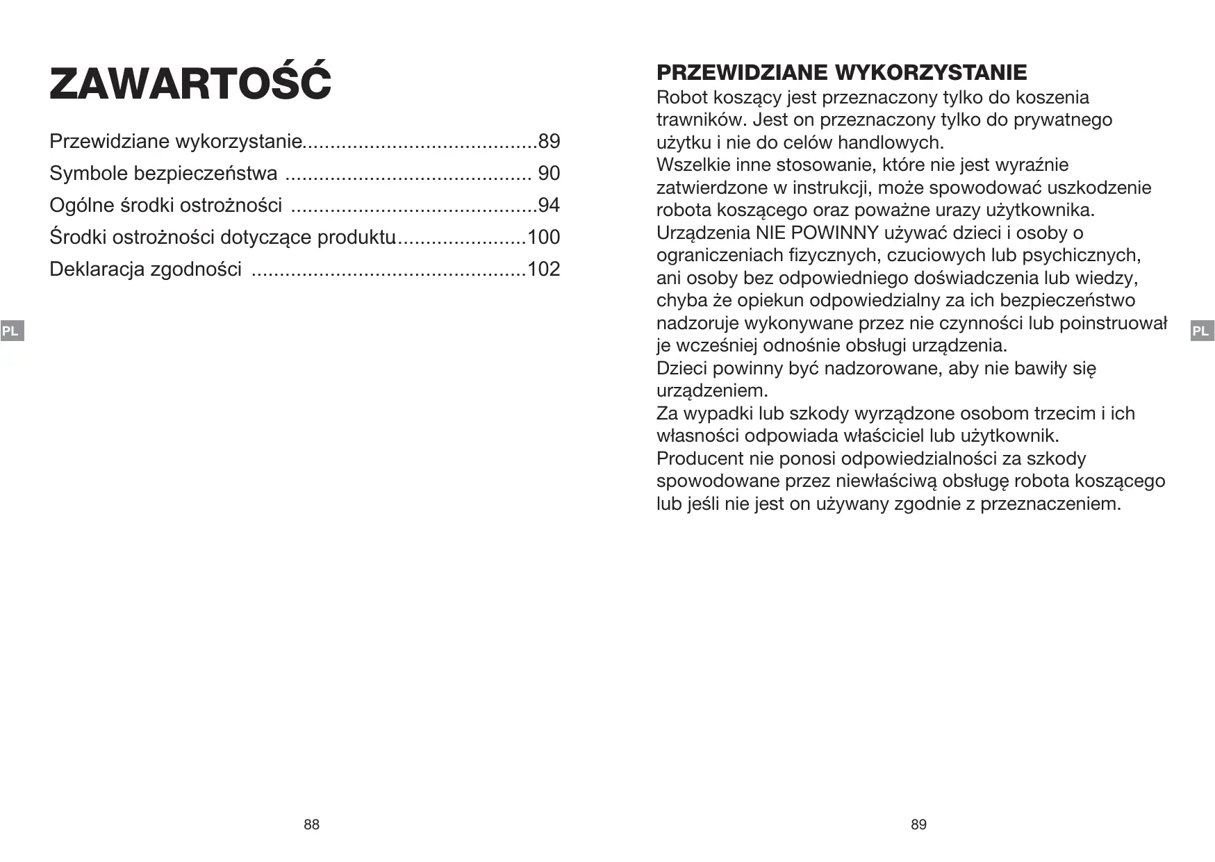 Le propriétaire ou l'utilisateur est responsable de tout accident ou blessure impliquant des tiers et leurs biens. Le fabricant décline toute responsabilité en cas de dommage entraîné par une utilisation incorrecte du robot- tondeuse ou si celui-ci n'est pas utilisé dans le but prévu.