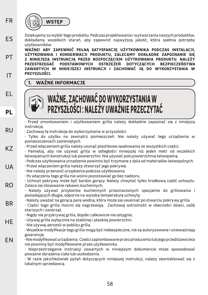 - Certaines parties de ce barbecue deviennent très chaudes. Prenez soin en présence d'enfants, de personnes âgées et d'animaux.