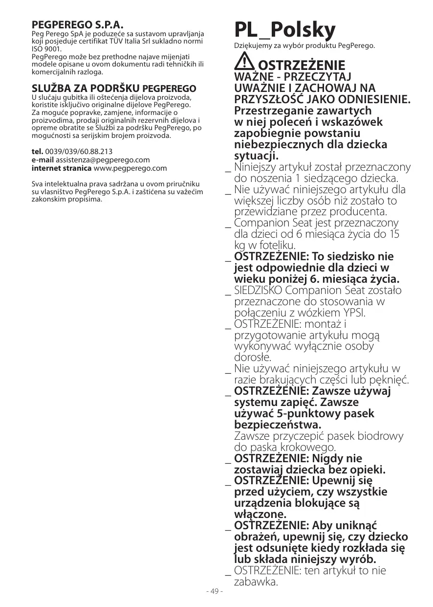 Companion seat - Wózki PEG PEREGO - Bezpłatna instrukcja obsługi