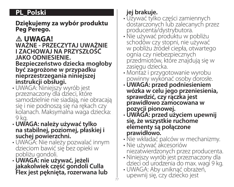 Culla Flex - Wózki PEG PEREGO - Bezpłatna instrukcja obsługi