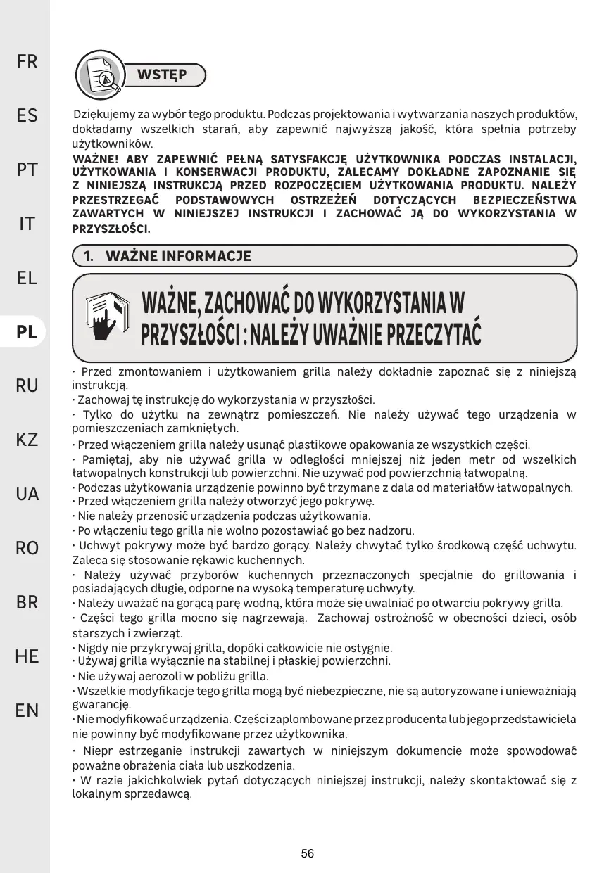 HYPERION - Elektryczny grill NATERIAL - Bezpłatna instrukcja obsługi