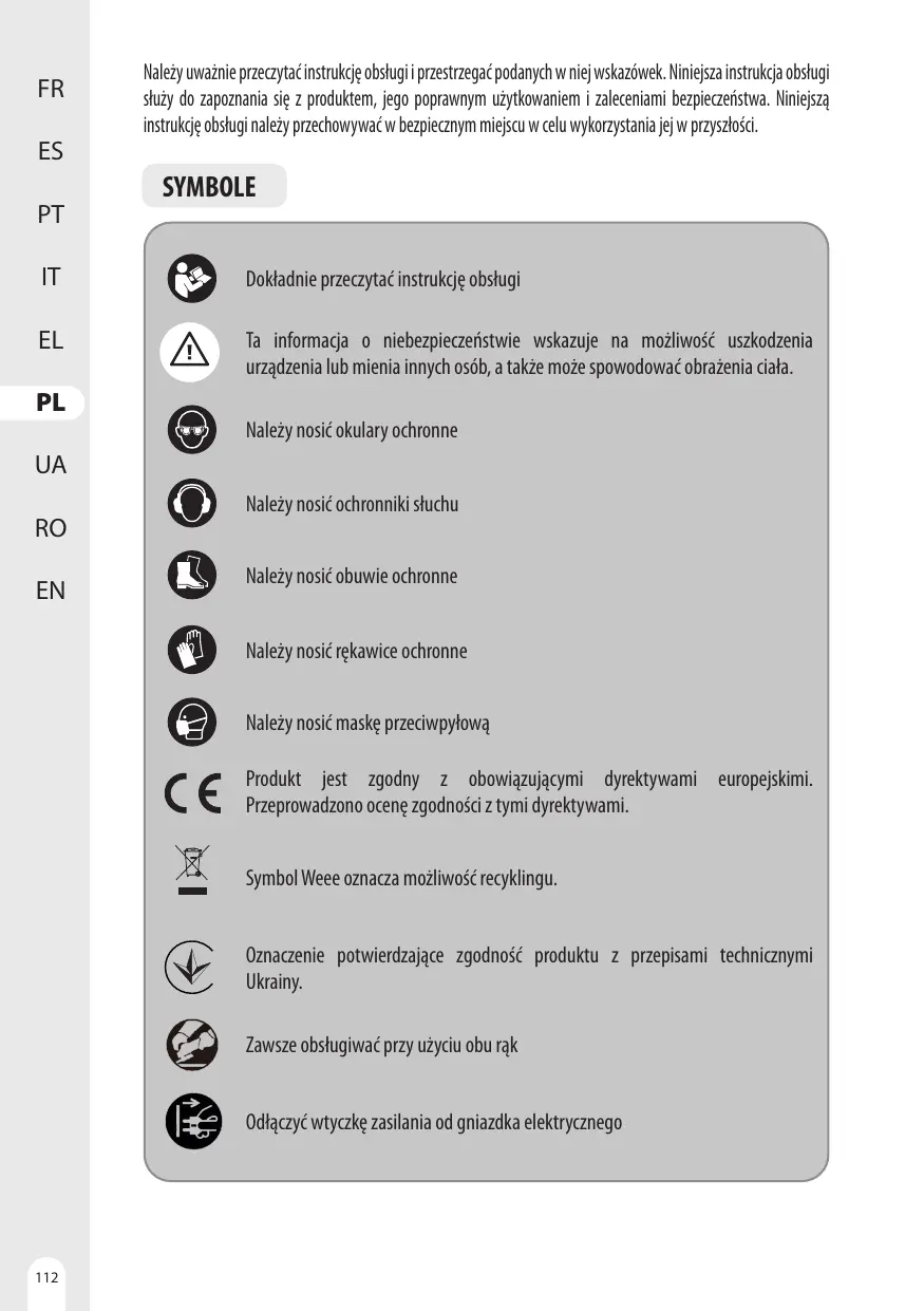 être dangereux pour l'environnement et la santé humaine car ils contiennent des substances dangereuses. UA PROTECTION DE L'ENVIRONNEMENT Les produits électriques usagés ne doivent pas être jetés avec les déchets ménagers. Recydez- RO les dans les installations existantes prévues à cet effet. Contactez les autorités locales ou votre revendeur pour des conseils en matière de recyclage. 1! sera ensuite recyclé ou démonté afin de EN