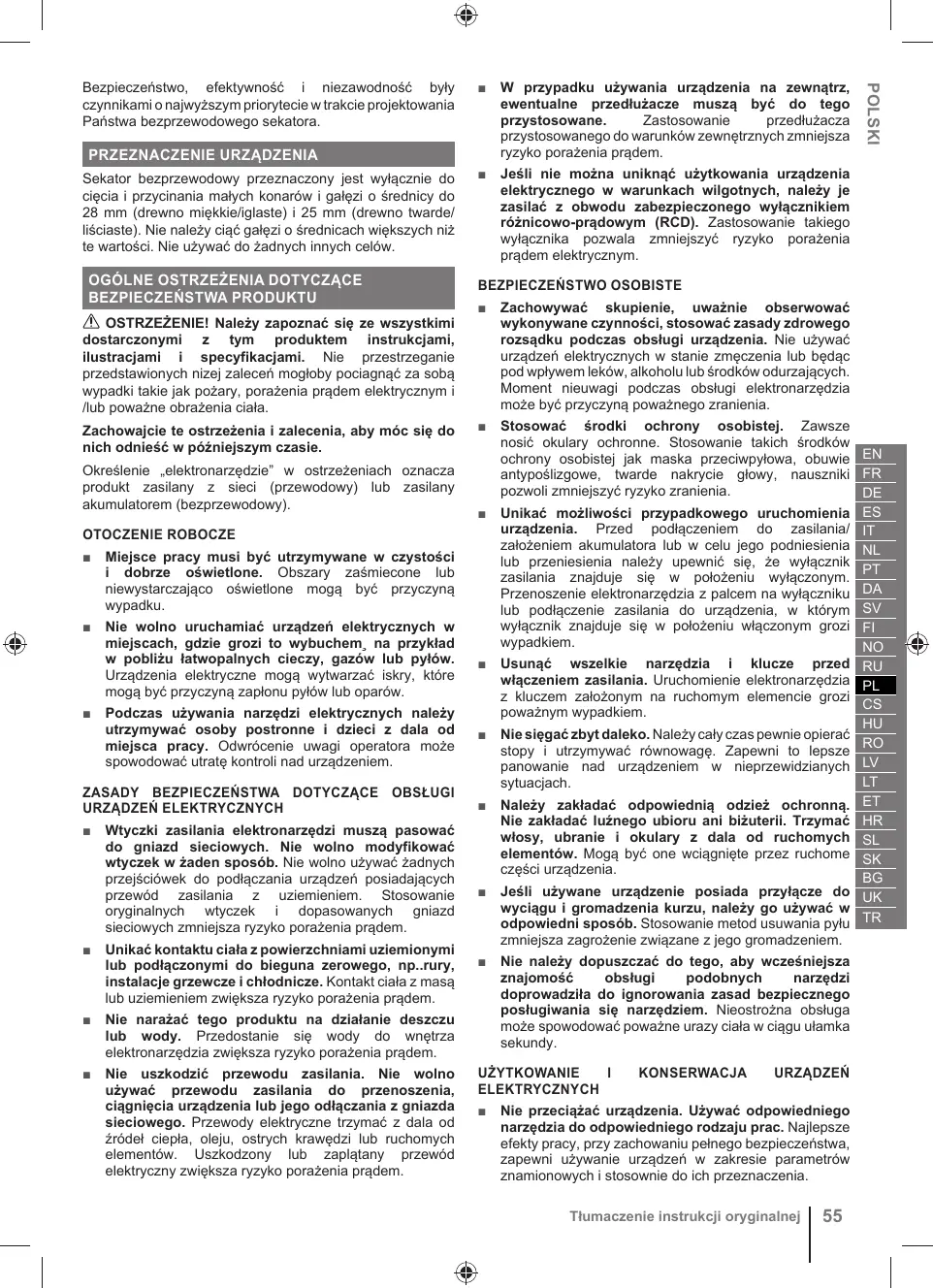 = Enretenez le produit avec soin. Maintenir le tranchant et la propreté du bord de coupe afin de garantir des performances optimales et de réduire le risque de blessure. Lubriñiez et changez les accessoires selon les instructions. = Avant d'utiliser le produit, vérifier les pièces endommagées et appuyer sur la gâchette pour s'assurer que les lames s'ouvrent et se ferment correctement. Avant toute utilisation prolongée du produit, toute pièce endommagée doit être examinée prudemment afin de déterminer si elle va fonctionner correctement et comme prévu. N'approchez pas vos mains de la lame. = Gardez votre corps au chaud par temps froid. Lorsque vous utilisez le produit, portez des gants afin de garder vos mains et vos poignets au chaud. Le temps froid est considéré comme un facteur contribuant très largement à l'apparition du syndrome de Raynaud. L'utilisation prolongée d'un outil est susceptible de provoquer ou d'aggraver des blessures. Assurez-vous de faire des pauses de façon régulière lorsque vous utilisez tout outil de façon prolongée. m Si la lame est coincée dans une branche pendant l'utilisation, ne pas tourner la lame. Éteindre le produit et tirer horizontalement pour dégager la lame de la branche. Couper les branches une par une. Ne jamais tenir la branche que vous élaguez avec votre main libre. Garder vos mains et toutes les autres parties de votre corps à distance de la zone de coupe. Ne jamais toucher les lames pour éviter les blessures.