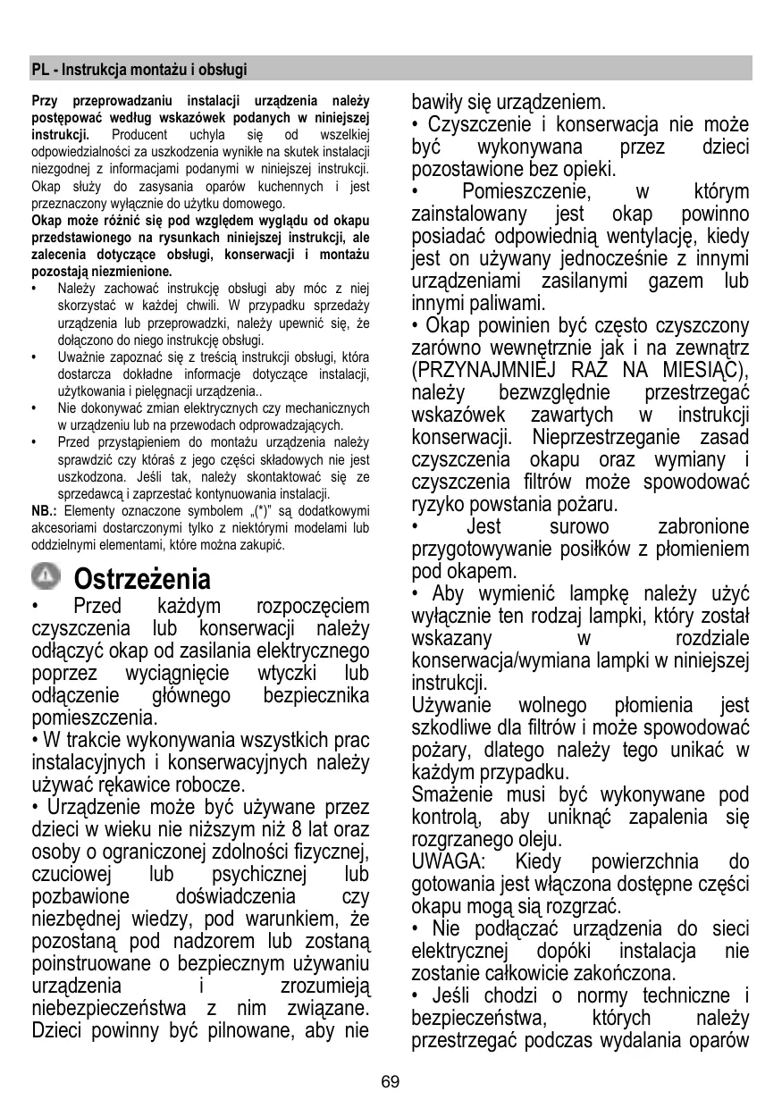 + La hotte ne doit JAMAIS être utilisée comme une surface d'appui, sauf indication expresse.