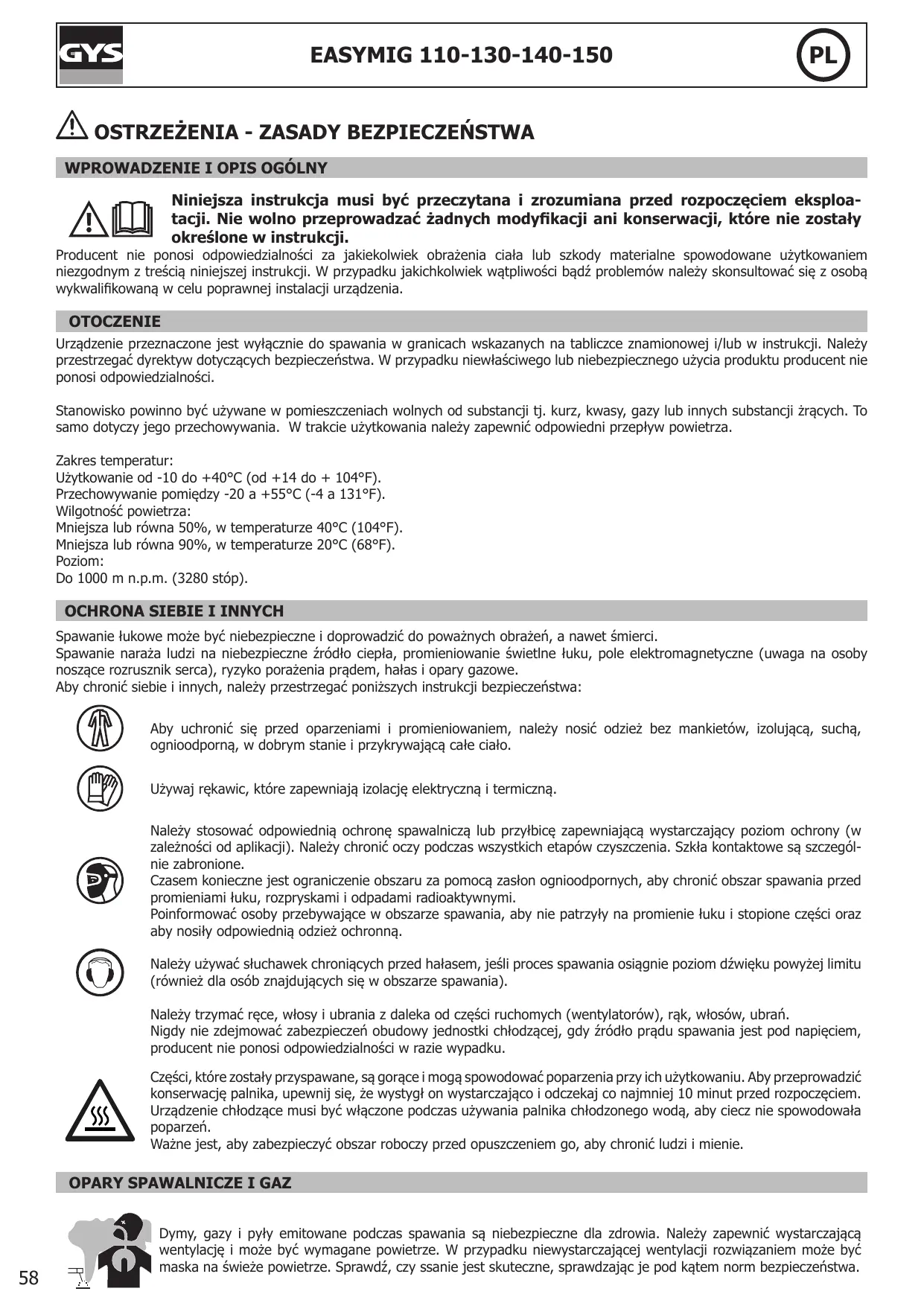 EASYMIG 110-130-140-150 - Spawarka GYS - Bezpłatna instrukcja obsługi