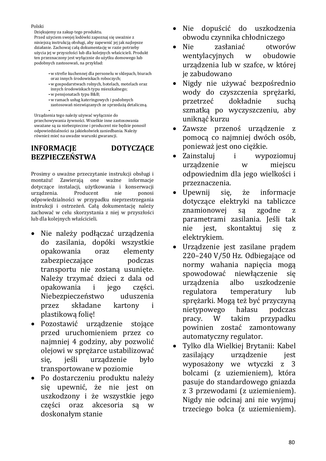 Cet appareil doit être utilisé uniquement pour conserver de la nourriture ; tout autre usage est considéré comme dangereux et le fabricant ne sera pas tenu responsable en cas de mauvaise utilisation. Il est donc recommandé de prendre connaissance des conditions de garantie.