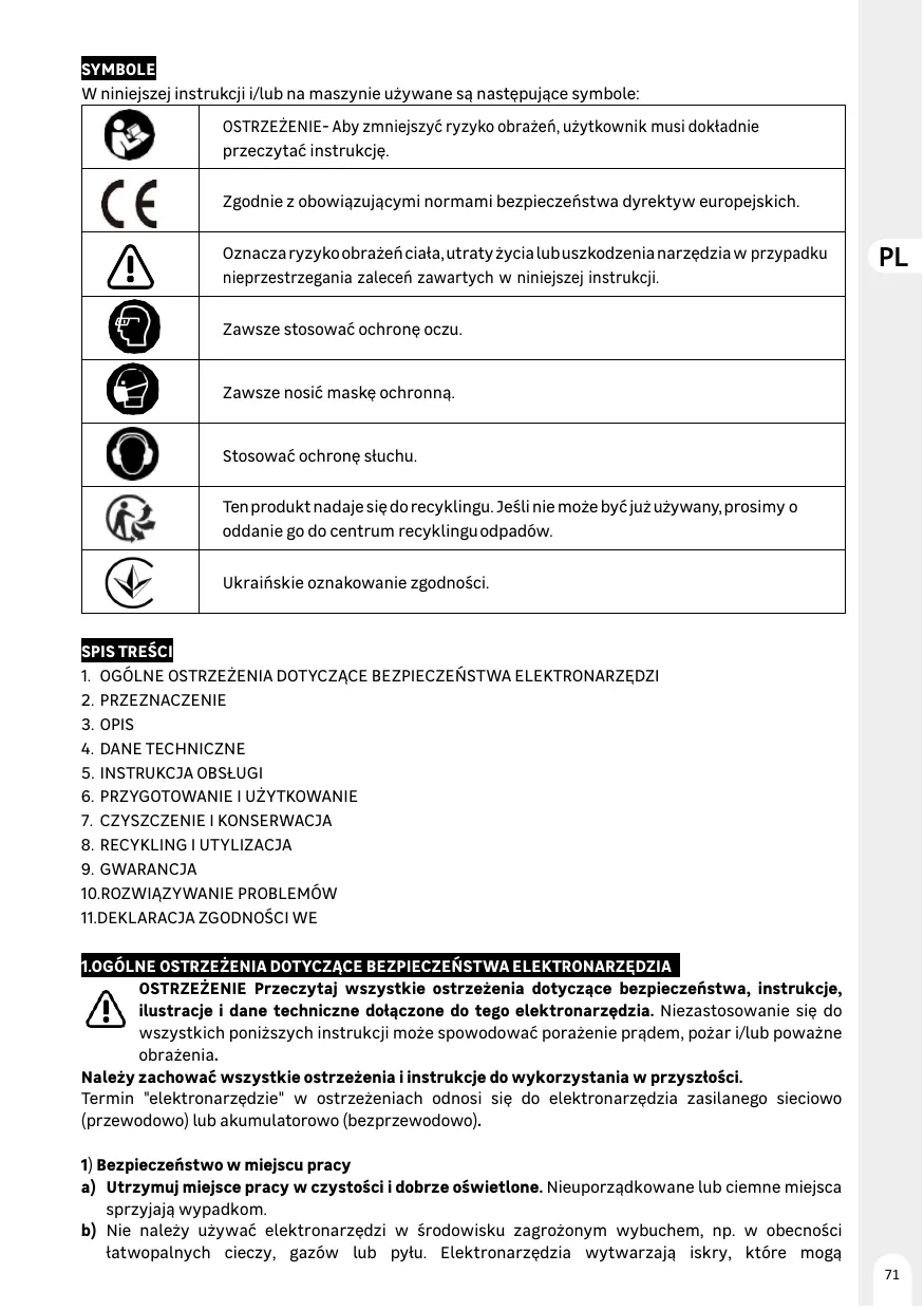 2. UTILISATION PRÉVUE Le produit est destiné à la rectific tion de métaux sans utiliser d'eau. Cette machine est utilisée pour polir Les outils de coupe ; Les fers à rabot, Le burin, les gouges, les outils de tournage, les forets, etc. Ce produit n'est pas destiné à un usage commercial et ne doit pas être utilisé pour les roues métalliques brossées.