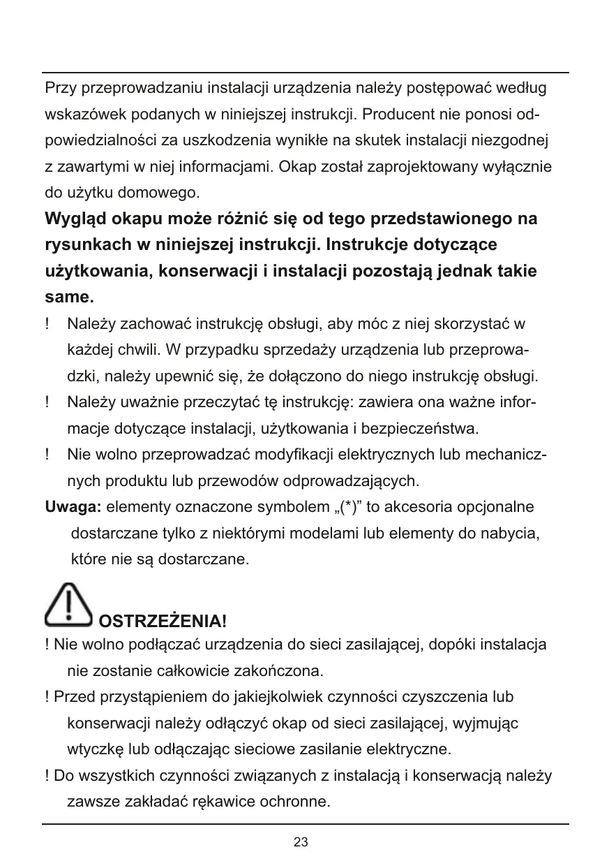 à . Okap pracujacy jako wyciag W tym przypadku opary sa odprowadzane na zewnatrz budynku za pomoca specja- Inej rury potaczonej z koinierzem taczeniowym znajdujacym sie na szczycie okapu. Uwagal Rura odprowadzajaca nie jest dostarczana w komplecie i naleZy ja dokupié osobno.