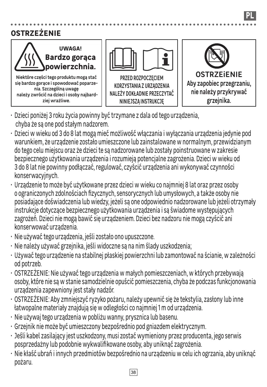 + AVERTISSEMENT: Ce radiateur n'est pas équipé d'un dispositif de contrôle de la température ambiante.