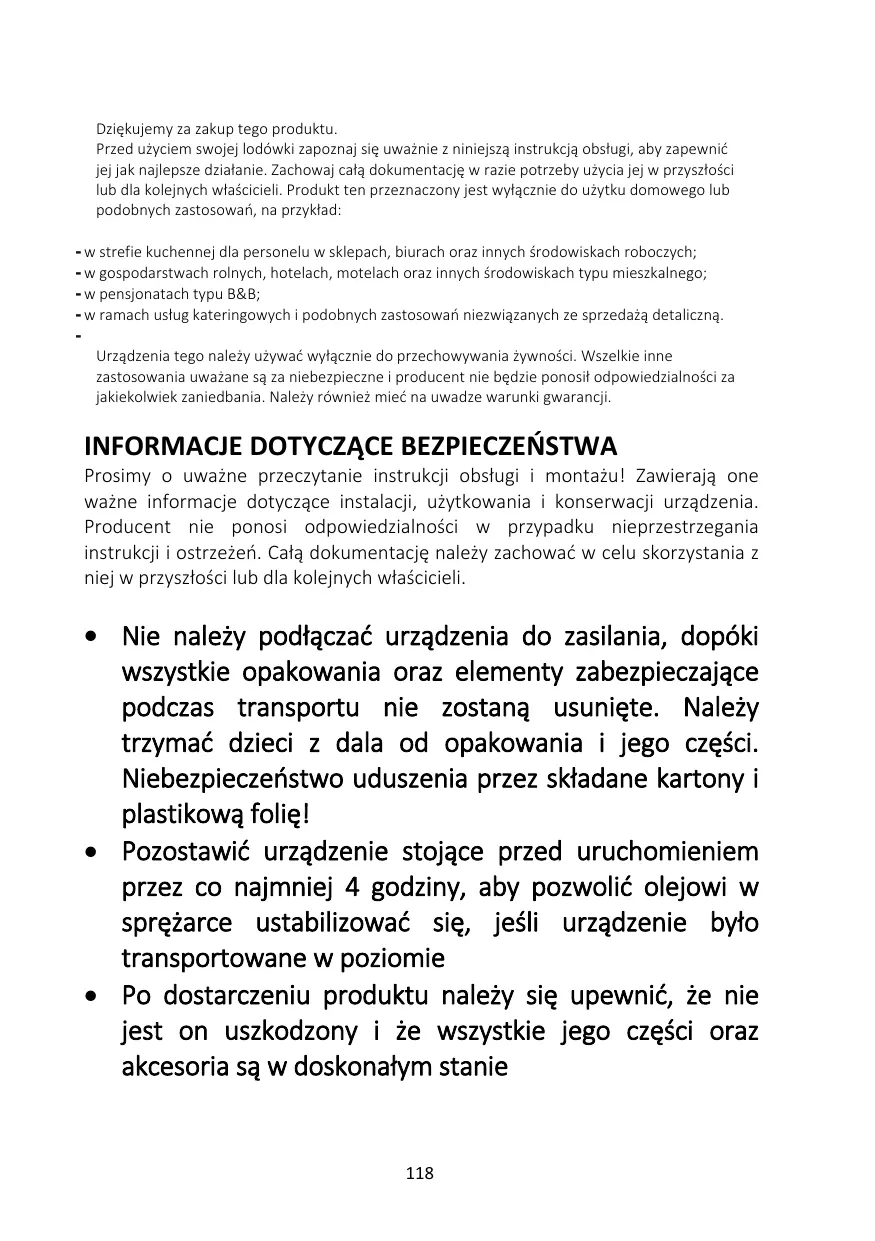Cet appareil doit être utilisé uniquement pour conserver de la nourriture ; tout autre usage est considéré comme dangereux et le fabricant ne sera pas tenu responsable en cas de mauvaise utilisation. Il est donc recommandé de prendre connaissance des conditions de garantie