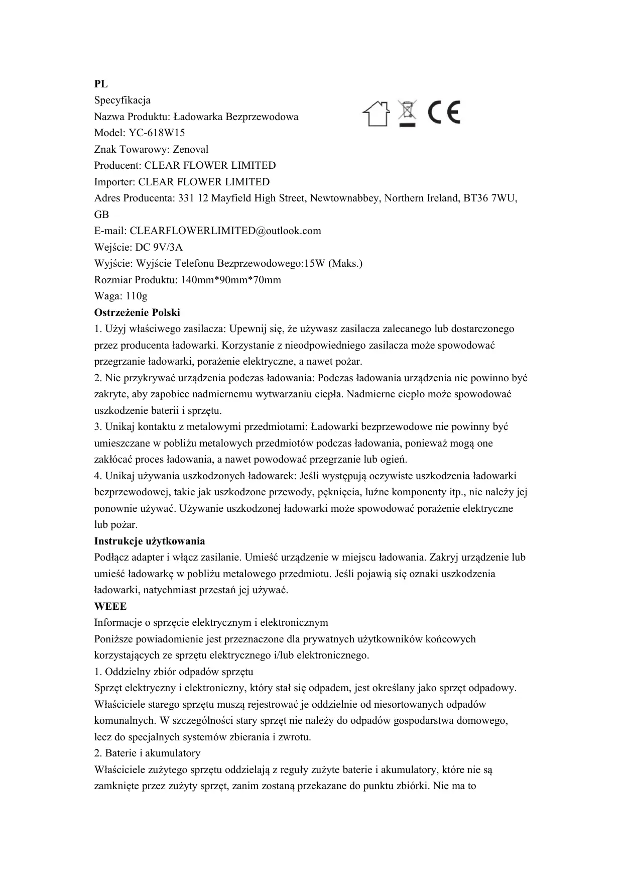 YC-618W15 - Chargeur sans fil Zenoval - Bezpłatna instrukcja obsługi