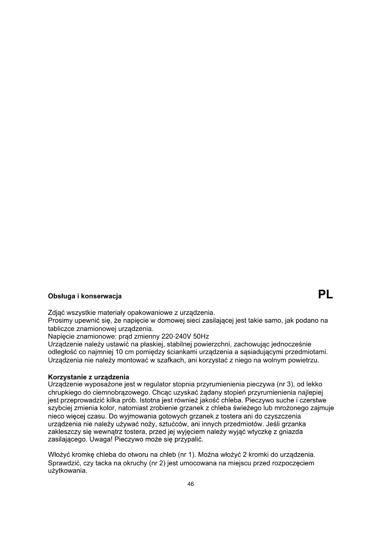 urządzenia nie należy używać noży, sztućców, ani innych przedmiotów. Jeśli grzanka