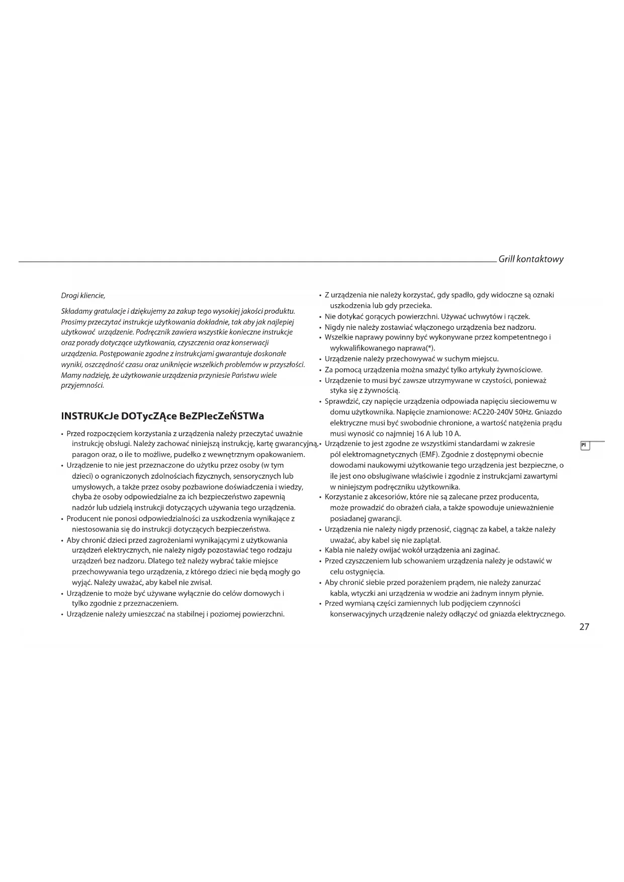• Podczas zamykania grilla kontaktowego należy prawidłowo umieścić