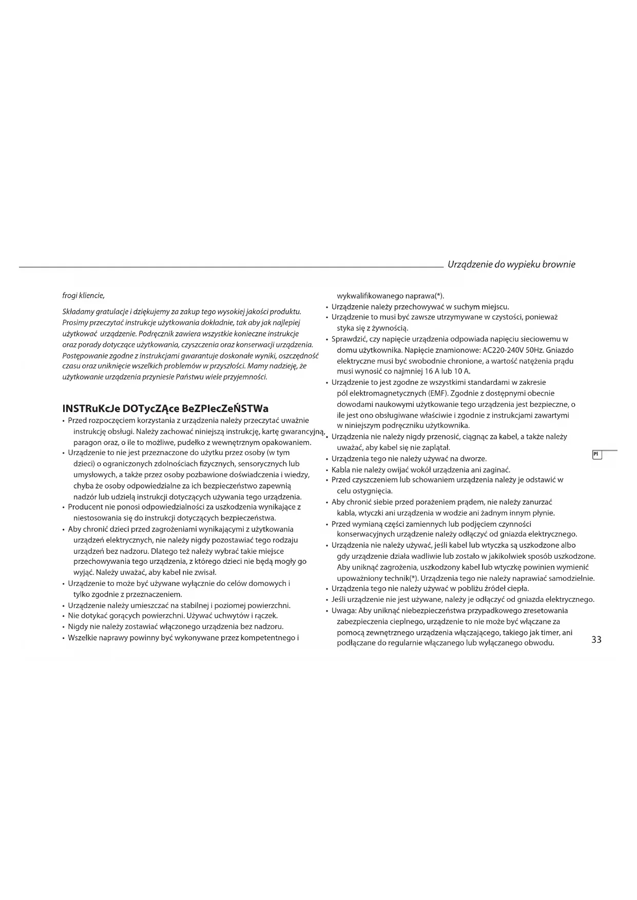 • Nigdy nie należy zostawiać włączonego urządzenia bez nadzoru.