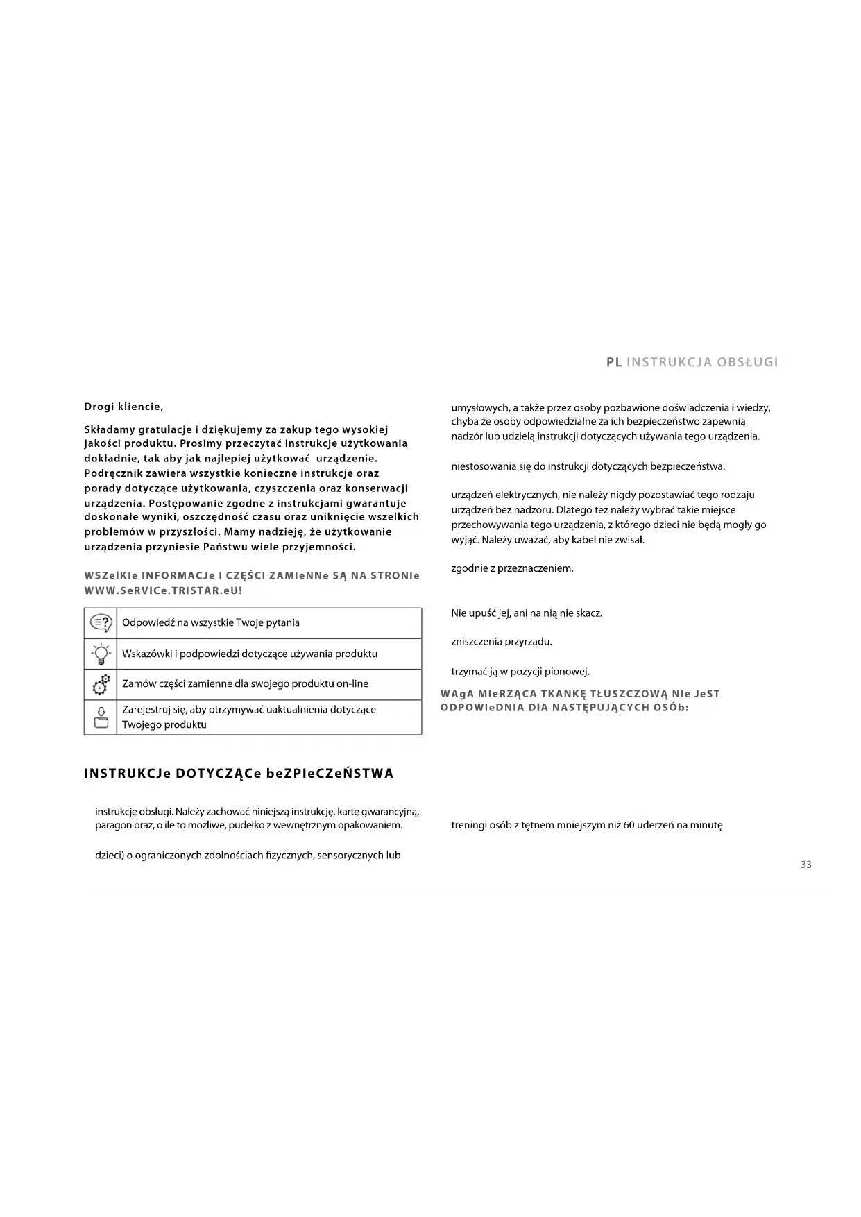 PL INSTRUKCJA OBSŁUGI Drogi kliencie,