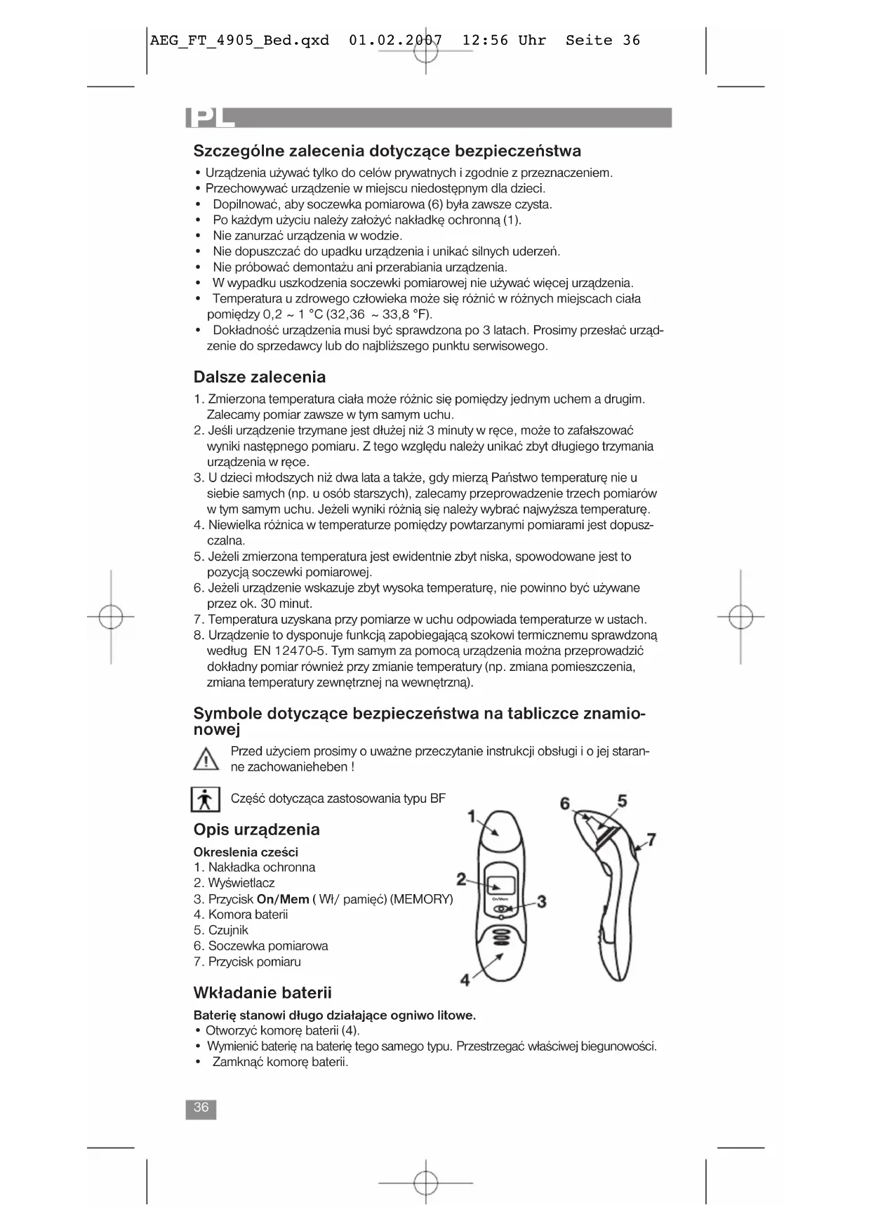 FT 4905 - Termometr AEG - Bezpłatna instrukcja obsługi
