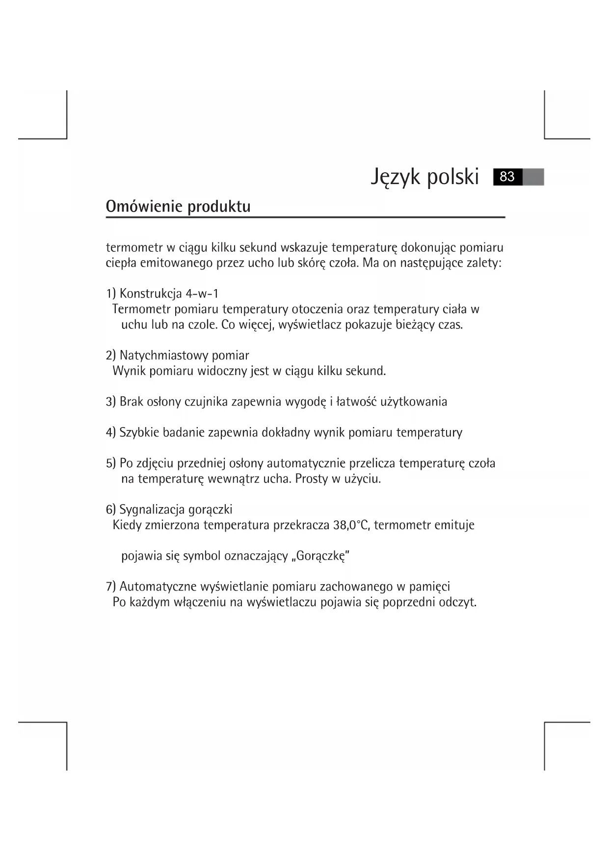 na temperaturę wewnątrz ucha. Prosty w użyciu.