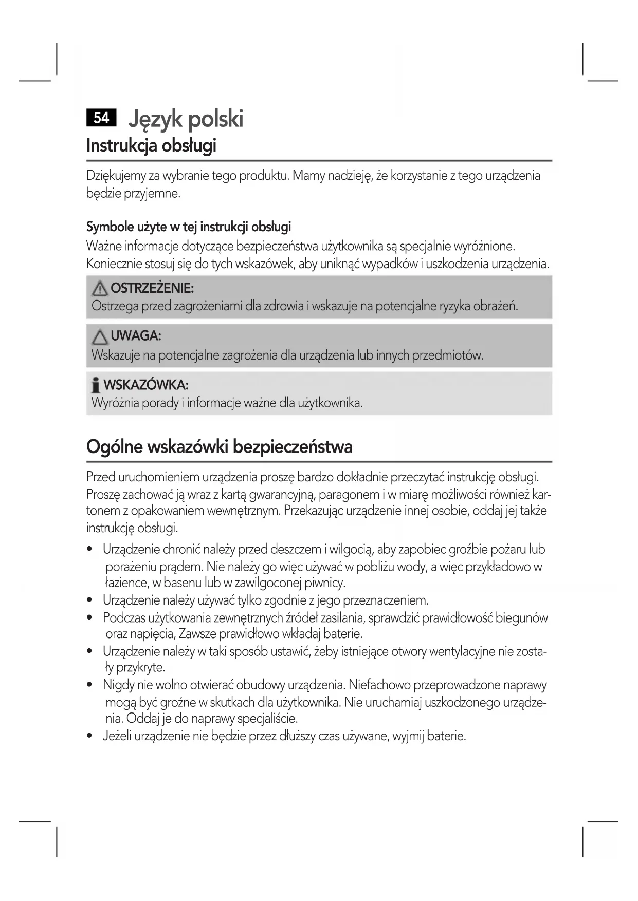 • Jeżeliurządzenieniebędzieprzezdłuższyczasużywane,wyjmijbaterie.Język polski