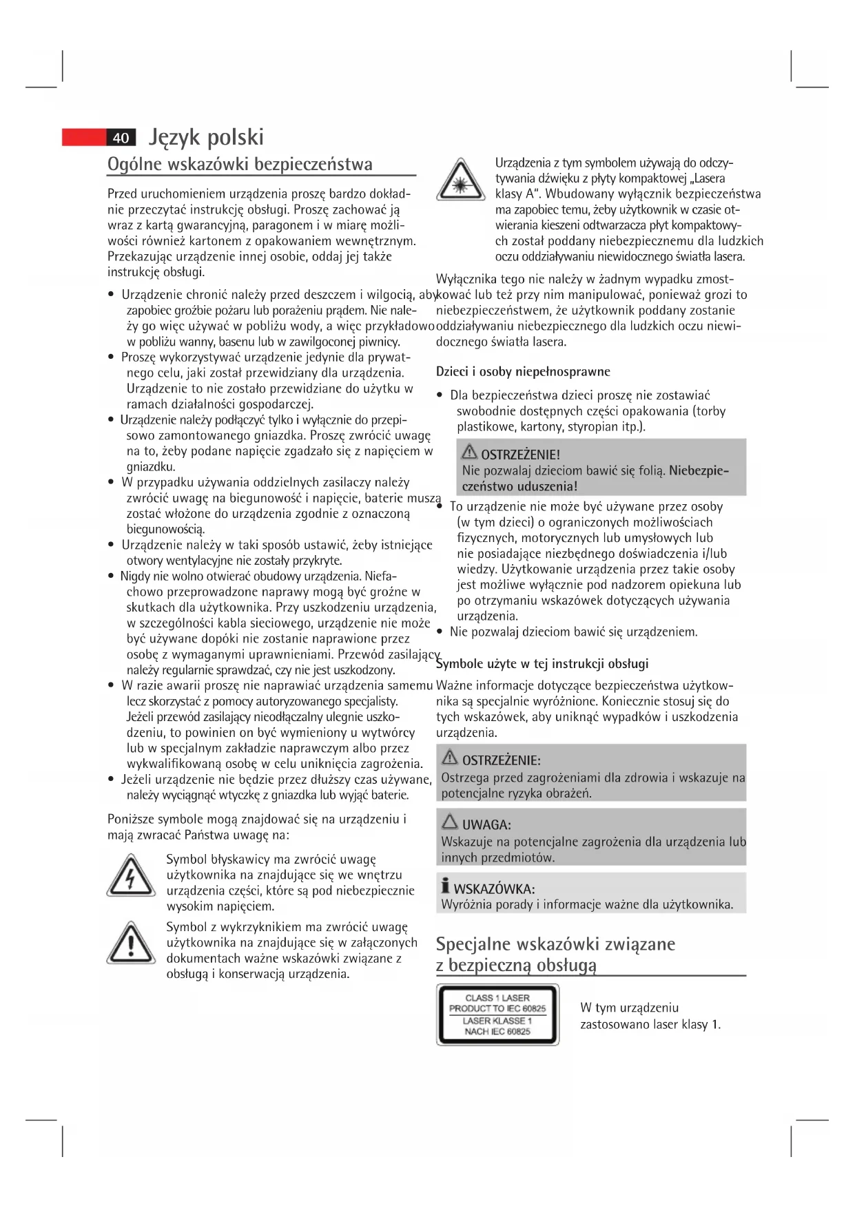 zastosowano laser klasy 1.Język polski
