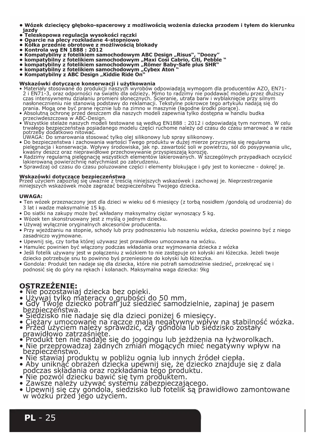 • Ten wózek przeznaczony jest dla dzieci w wieku od 6 miesięcy (z torbą nosidłem /gondolą od urodzenia) do