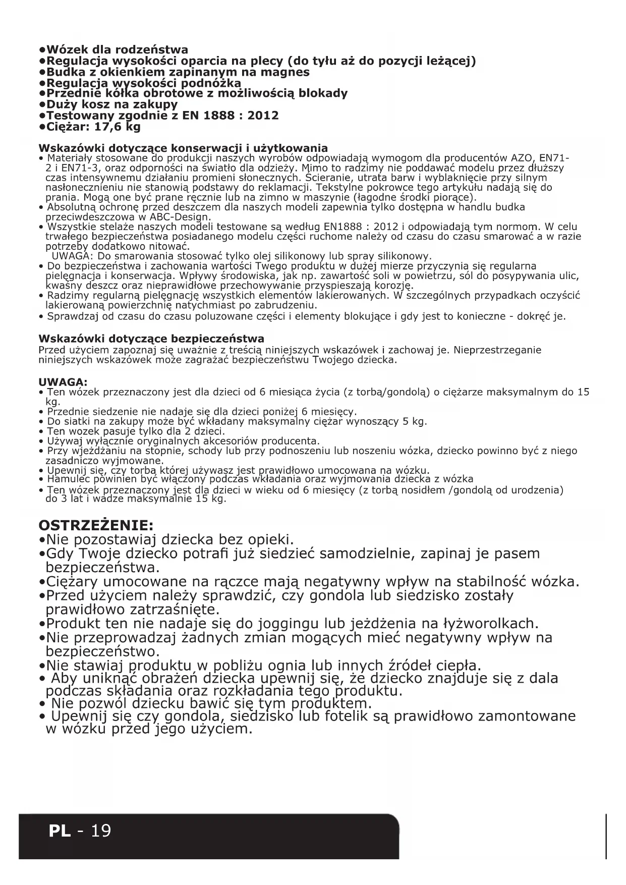 •WszystkiestelażenaszychmodelitestowanesąwedługEN1888:2012iodpowiadajątymnormom.Wcelu