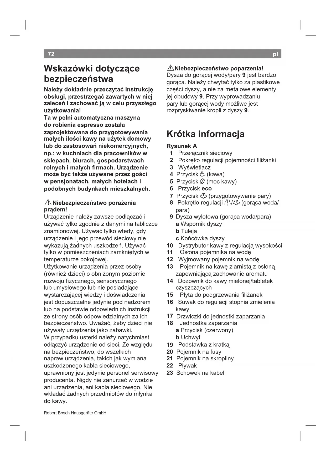 Benvenuto Venezia TCA5601 - Ekspres do kawy BOSCH - Bezpłatna instrukcja obsługi