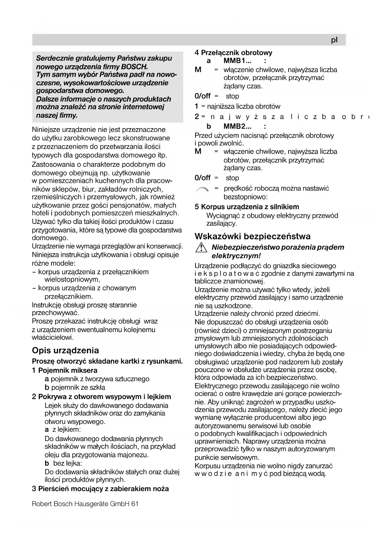 INSTRUKCJA OBSŁUGI MMB2001 BOSCH