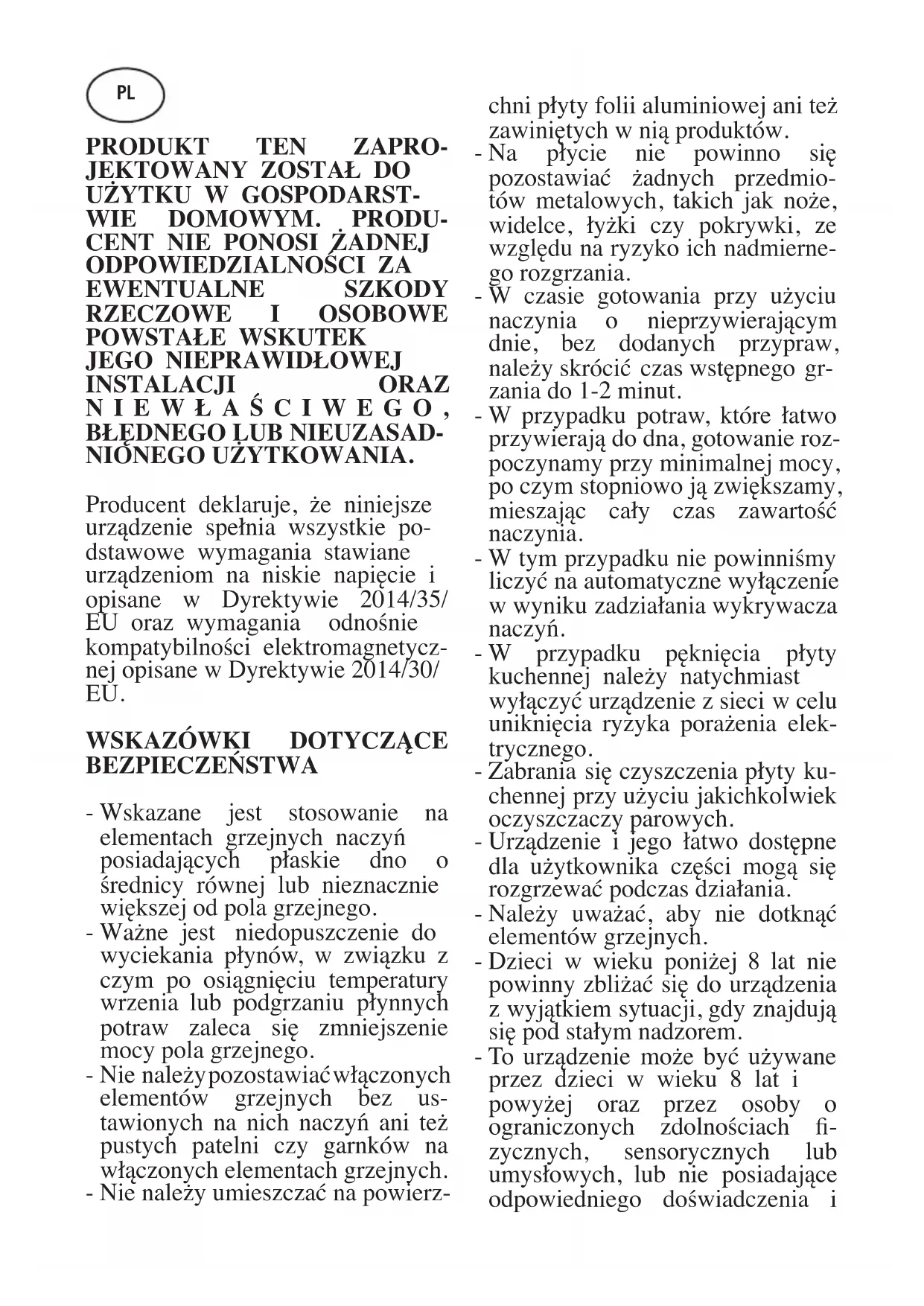 - Rzyko zapłonu: nie gromadzić przychodmiotów na powierzchni sąȩczęj do gotowania.